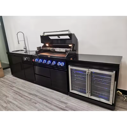 Pinnacle 805 Deluxe Black Stainless Steel BBQ Grill Island with Beverage Center