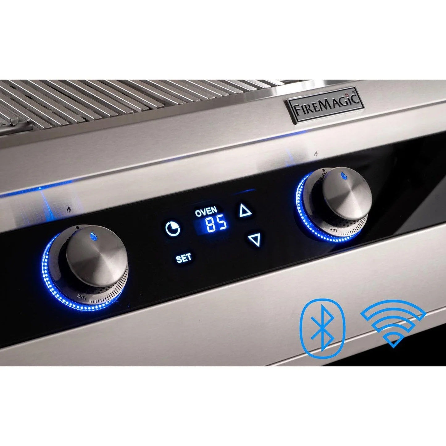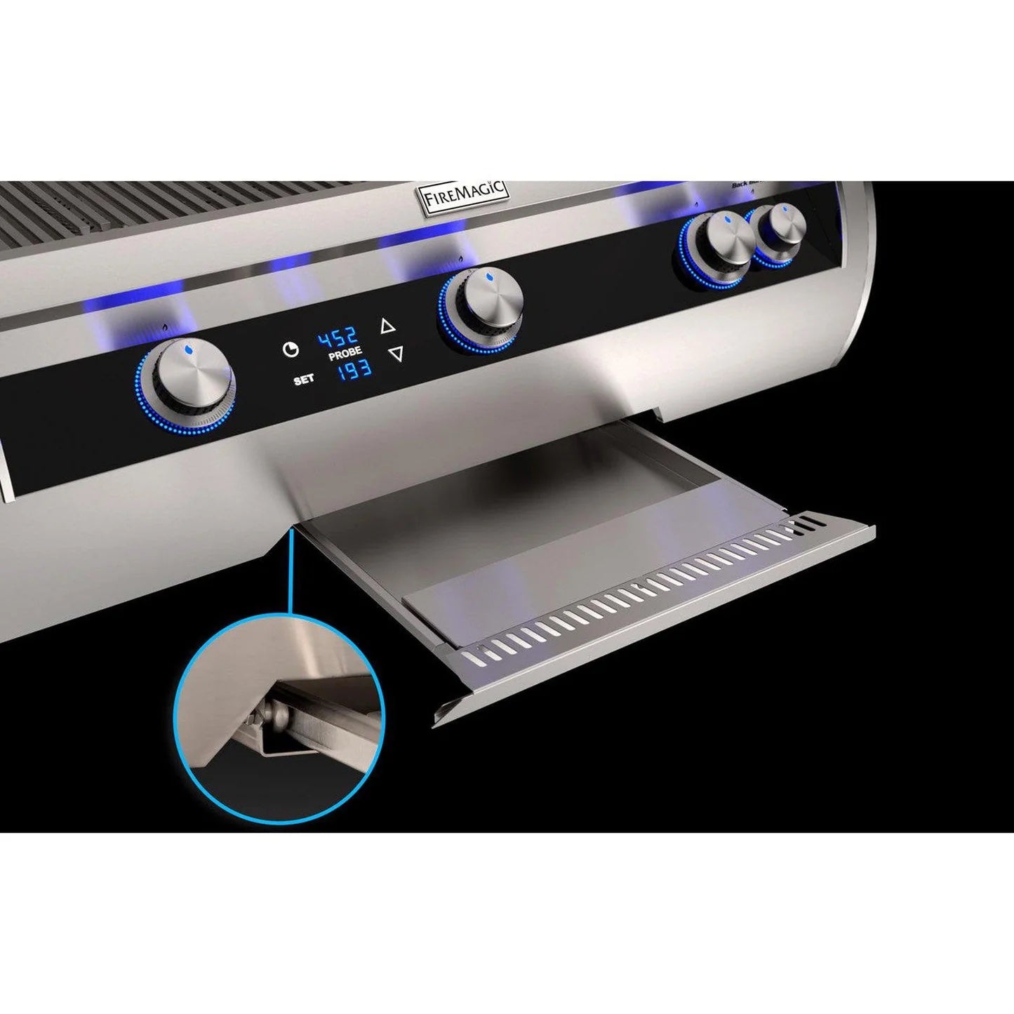 Echelon drip tray: Built with ball bearings for easy glide. Perfect size for easy handling. Use with Fire Magic drip tray liners for convenient cleanup. A chrome analog thermometer with a meat probe is included, digital thermometer upgrade is available which provides a state-of-the-art electronic thermometer display, with a meat probe, and has an impressive array of features.