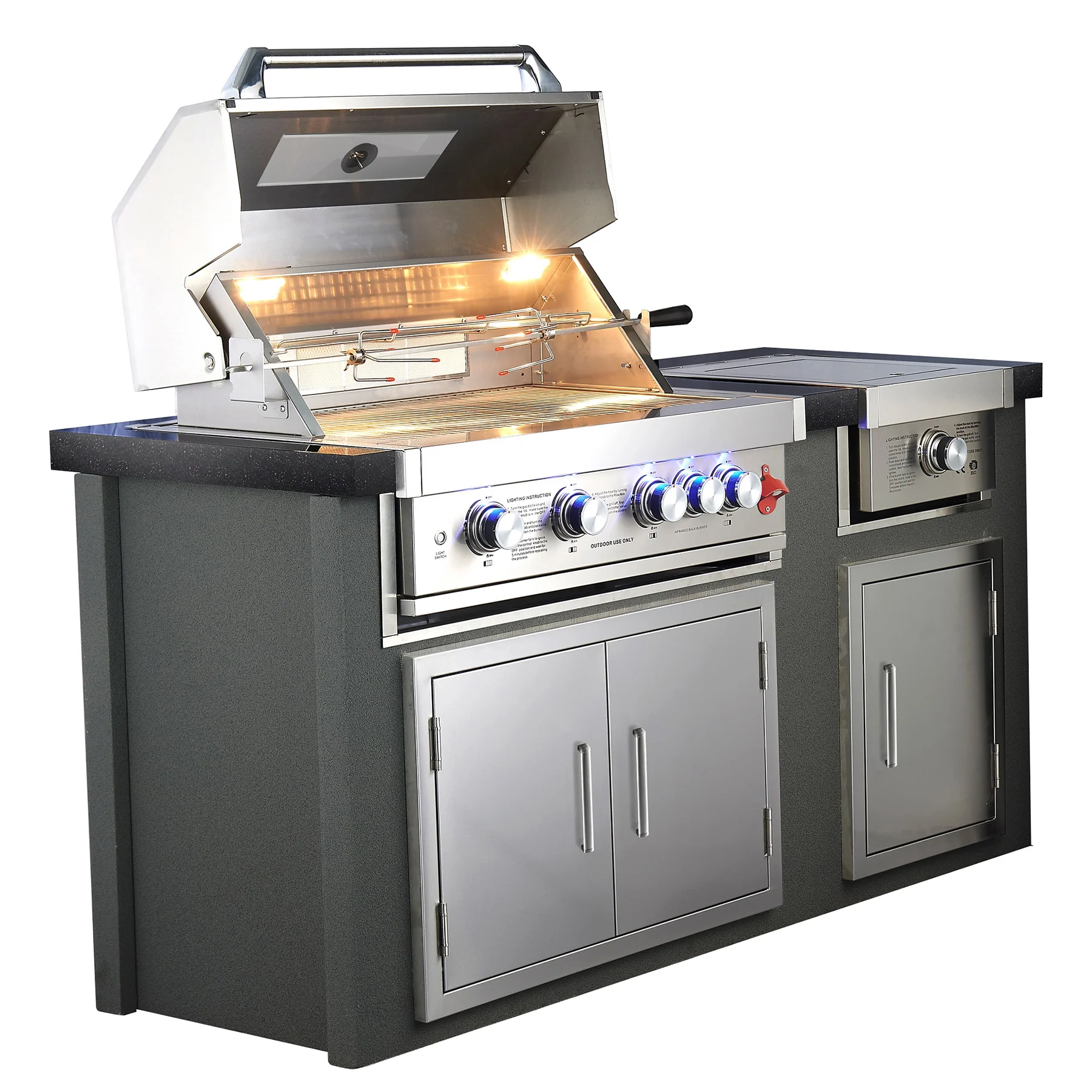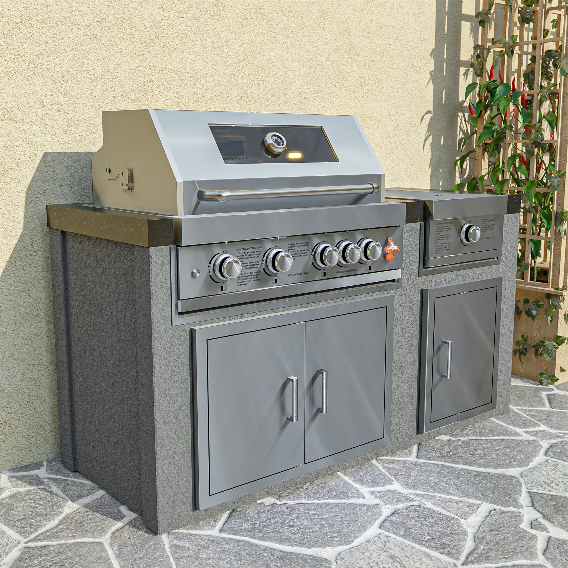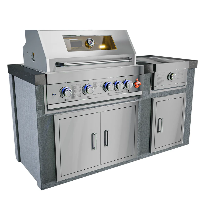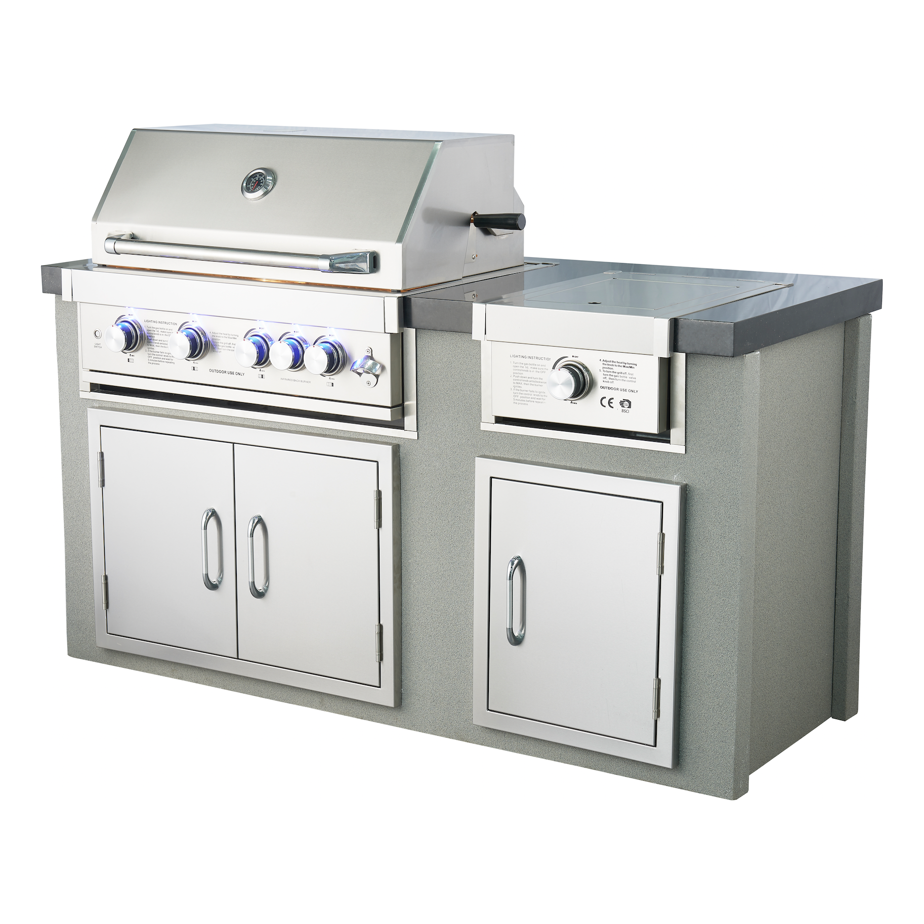 - Powerful built-in stainless steel side burner, double doors, and single-door