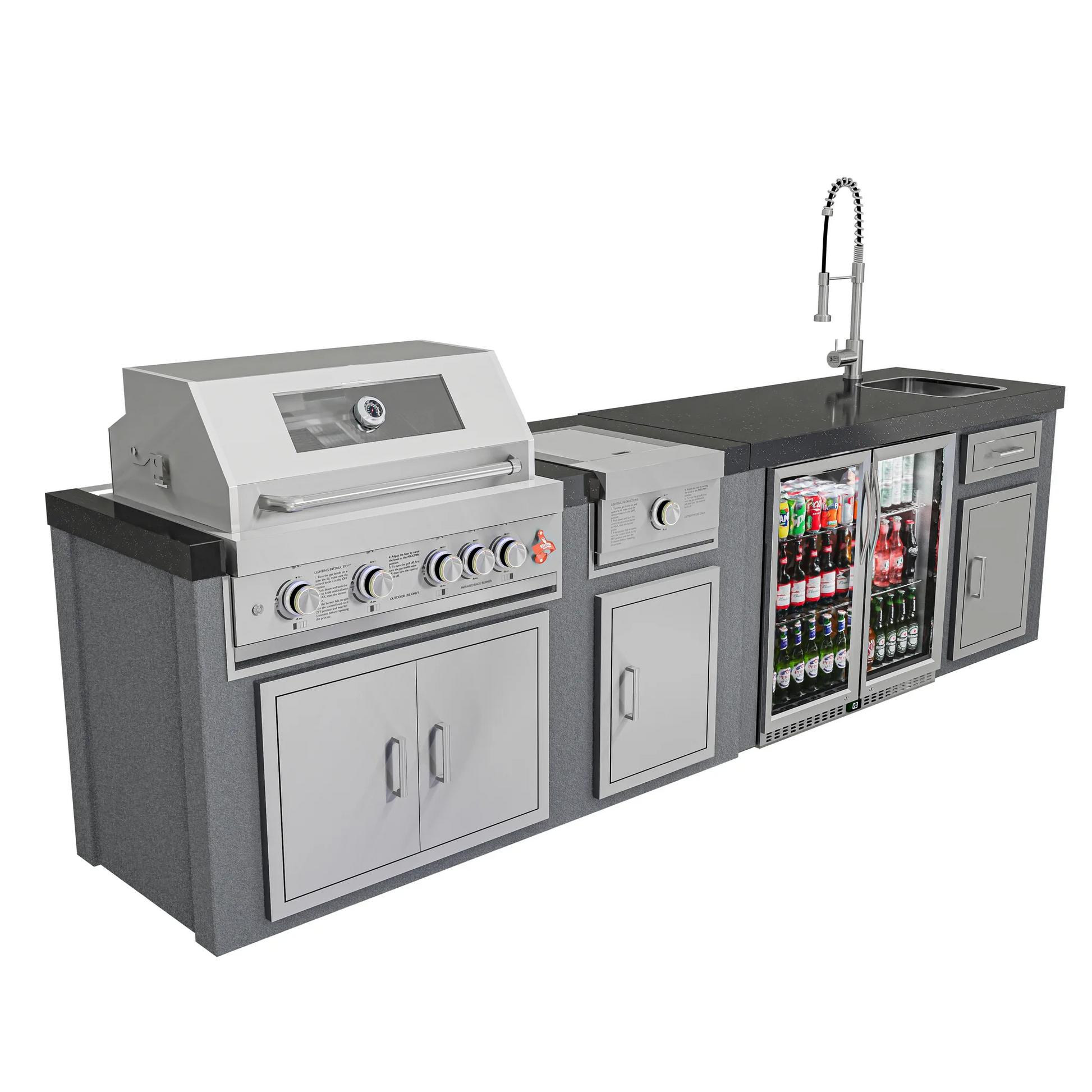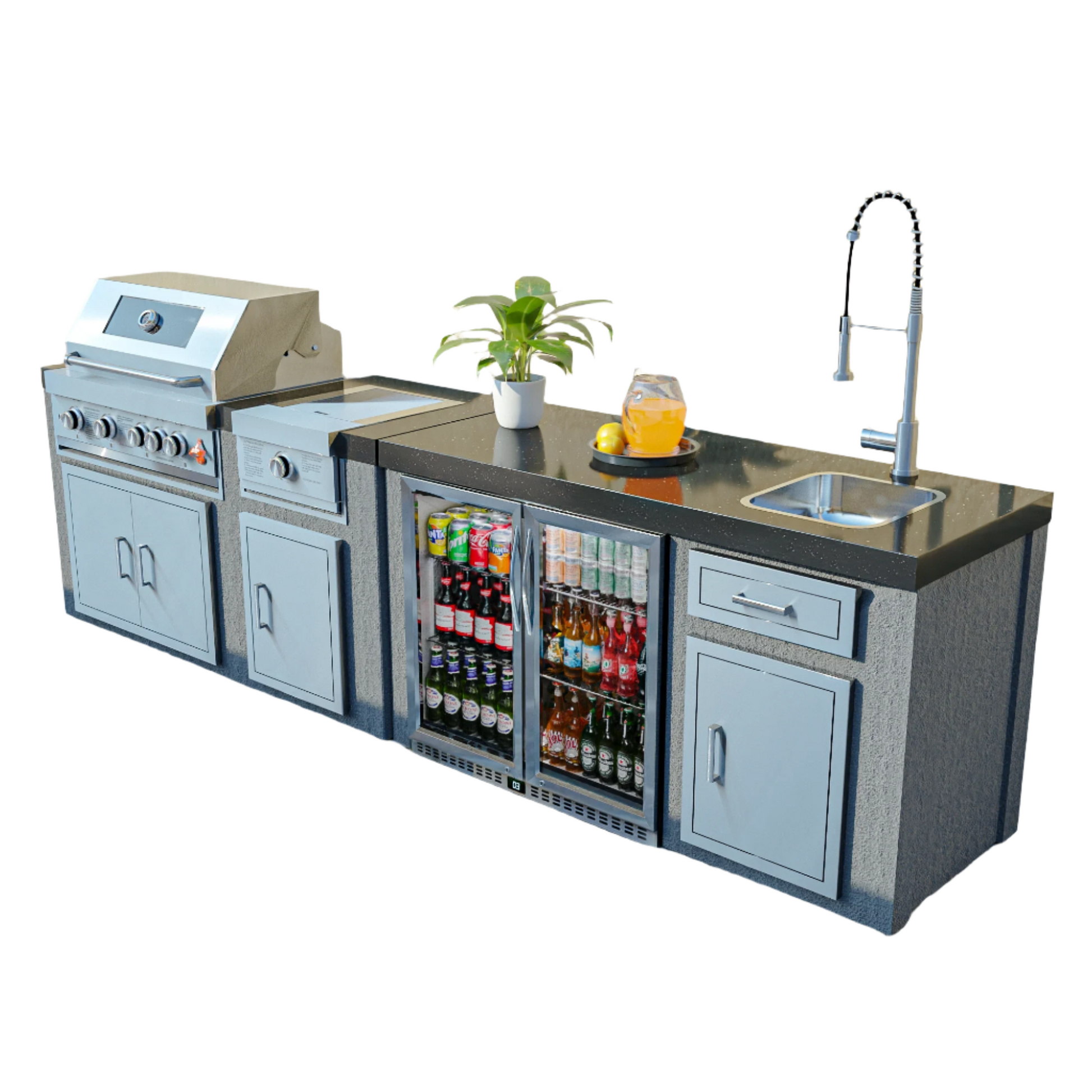 The 304-grade stainless steel offers a blend of fine materials that is stunning on both modern and traditional patios. The oversized granite countertop complements the look of the product and is easy to maintain.