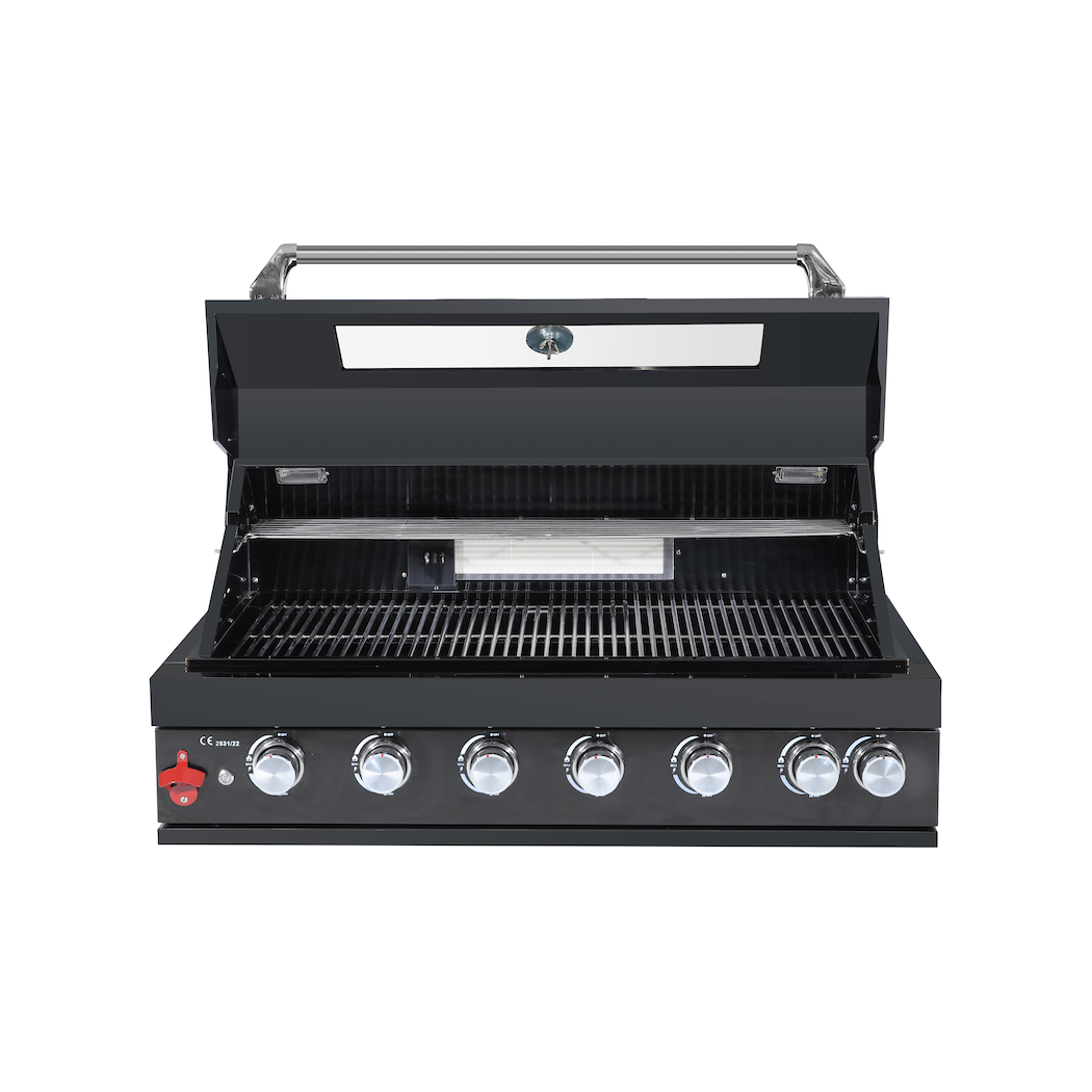 The PINNACLE 805 Black Stainless Steel Built-In Grill is a robust, stylish, and fully equipped grill head. This 6-burner 38x18” grill allows even beginner chefs to craft professional meals.