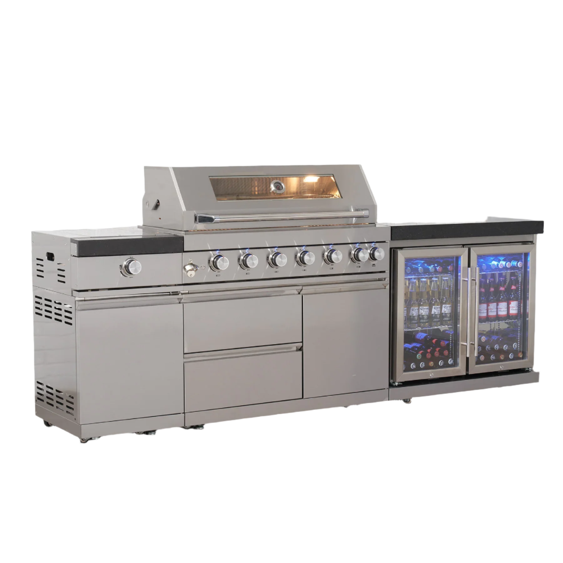 Pinnacle 805 Stainless Steel BBQ Grill Island with Double Fridge Cabinet