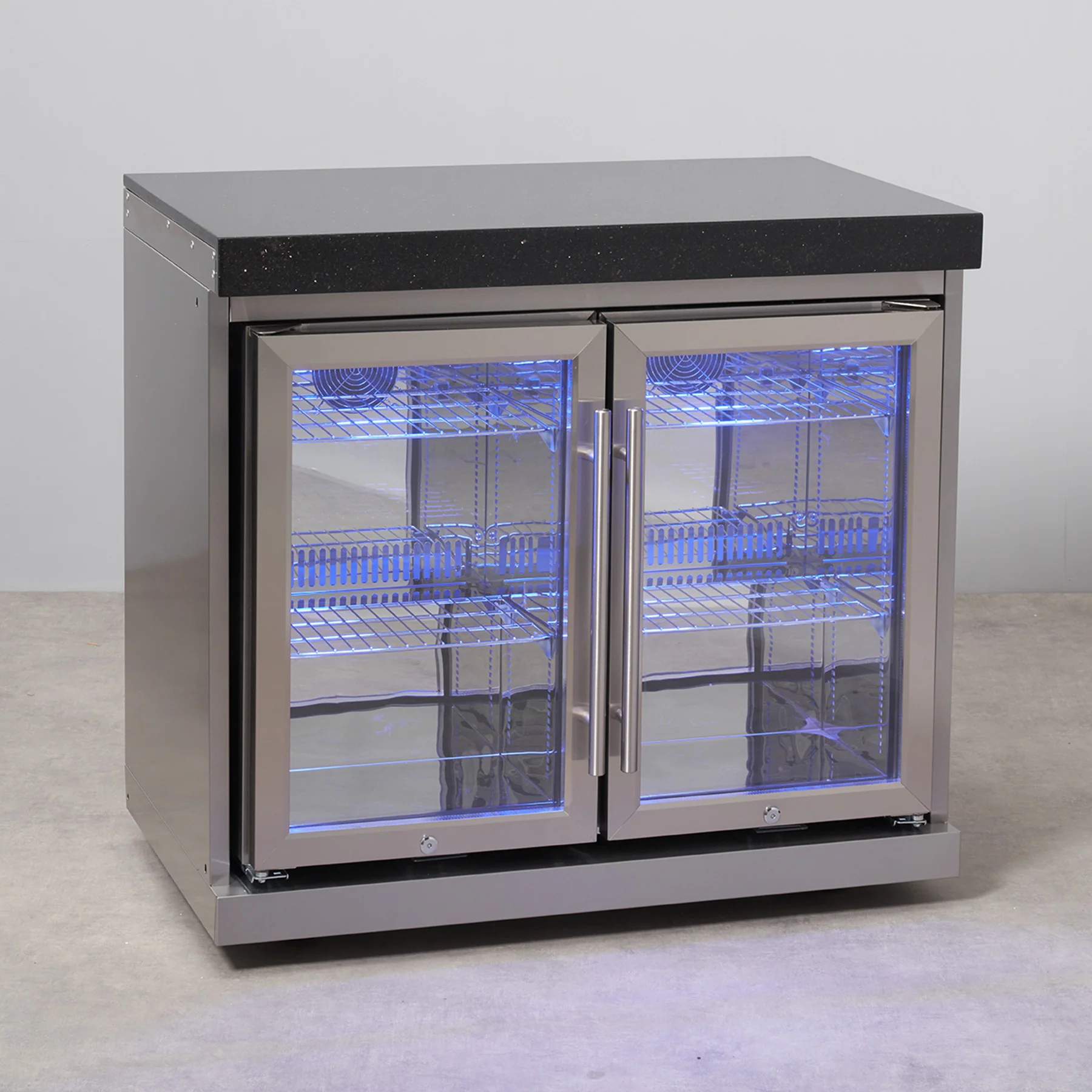 - Blue LED Lighting in the drink cooler