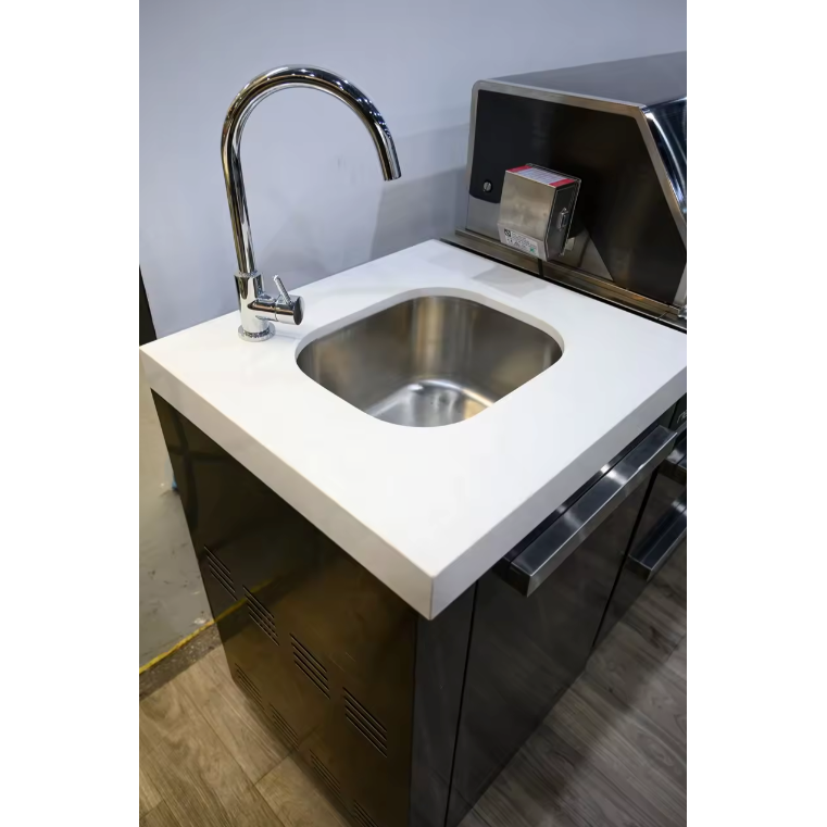- Black stone, white stone, or stainless steel countertop options