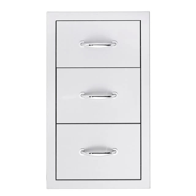 Bring efficiency and function to your outdoor kitchen with TrueFlame Drawers. With multiple configurations, use our drawers to maximize the space and design of your outdoor space. Built to last, all drawers are manufactured fully enclosed with durable construction for maximum protection from the outdoors. TrueFlames 17" x 30" triple drawer offers #304 stainless steel construction, stainless steel mounting tabs, smooth gliding and soft closing on heavy-duty tracks, Hingeless Design, #304 Stainless Steel Modern Handle designed to enhance both the aesthetics and structural integrity of the grill, and a Gold Standard Lifetime Warranty.